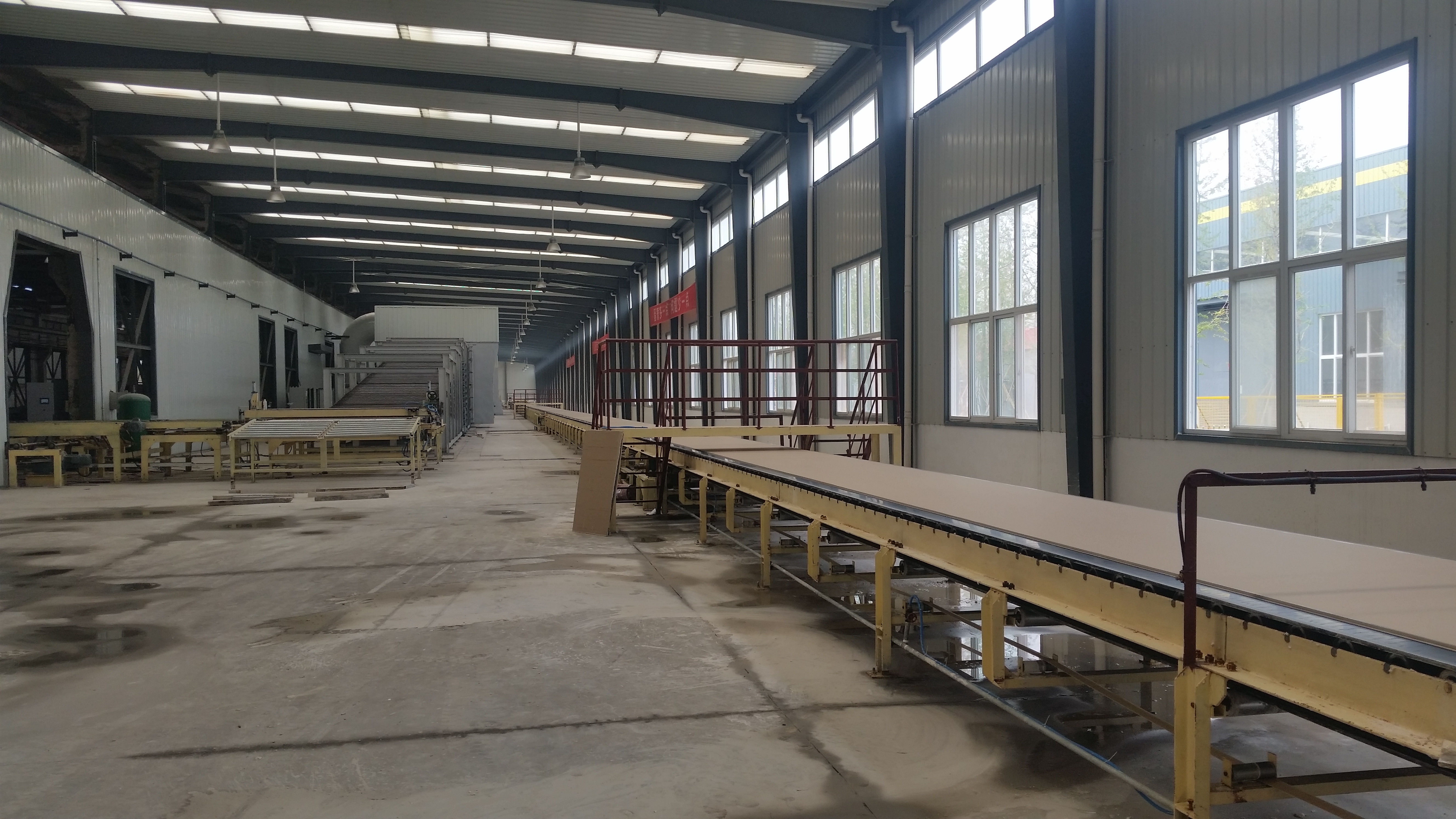 相關(guān)介紹:我公司根據(jù)多年從事石膏建材設(shè)備及生產(chǎn)的經(jīng)驗(yàn),研發(fā)出全自動(dòng)無(wú)紙石膏板生產(chǎn)線,該生產(chǎn)線采用自動(dòng)配料、自動(dòng)添加網(wǎng)格布、自動(dòng)截長(zhǎng)、自動(dòng)修邊、機(jī)械化調(diào)整寬度長(zhǎng)度及厚度、多層鋪漿技術(shù)、自動(dòng)碼垛,并可配套橫向風(fēng)干燥系統(tǒng),實(shí)現(xiàn)生產(chǎn)線的全自動(dòng)生產(chǎn),其生產(chǎn)厚度從6mm到200mm可調(diào),寬度從600mm到1250mm可調(diào),長(zhǎng)度從1200mm到3600mm可調(diào)。該生產(chǎn)線的研發(fā)成功,填補(bǔ)了空白,為及國(guó)際上無(wú)紙石膏板的推廣起到了奠定裝備裝備基礎(chǔ)的作用。
